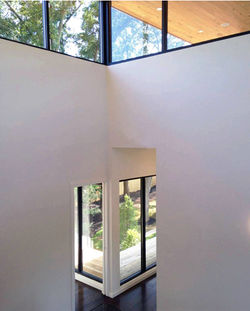 This 4500 sf house used an "L-shaped" geometry to create structure while integrating the elements of its surroundings. At the heart of the home is a 3-story space that is grounded by the kitchen as a gathering space. The "atrium" becomes a natural cooling device with operable windows above. The front porch is a modern reinterpretation of southern vernacular housing. Public functions happen at the lower level, while private functions happen above. We used native Georgia materials such as cypress, marble, and granite creating a natural palette. My responsibilities were assisting in the constructions documents, detail drawings, and 3D renderings.